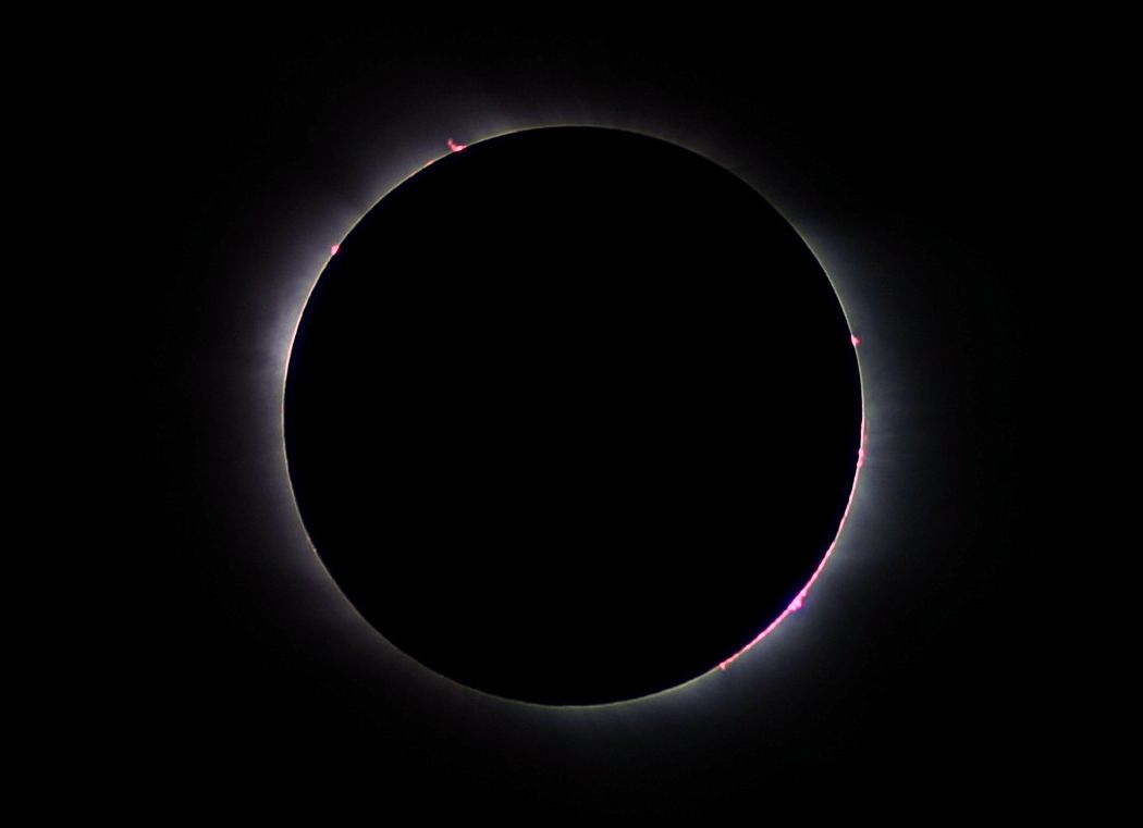 Eclipse total de sol; cromosfera, protuberancias y baja corona. Turquía