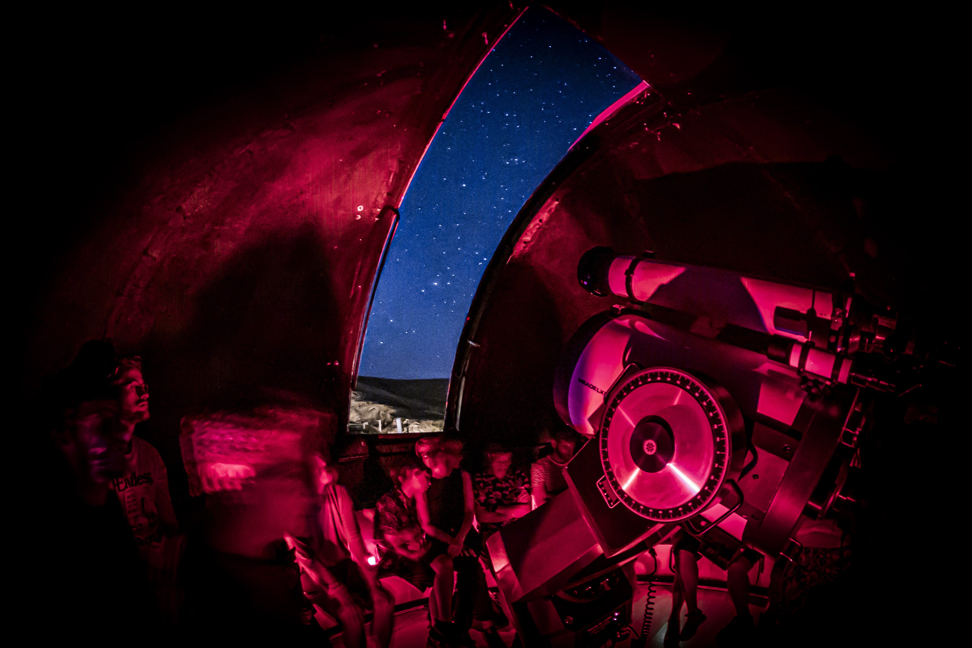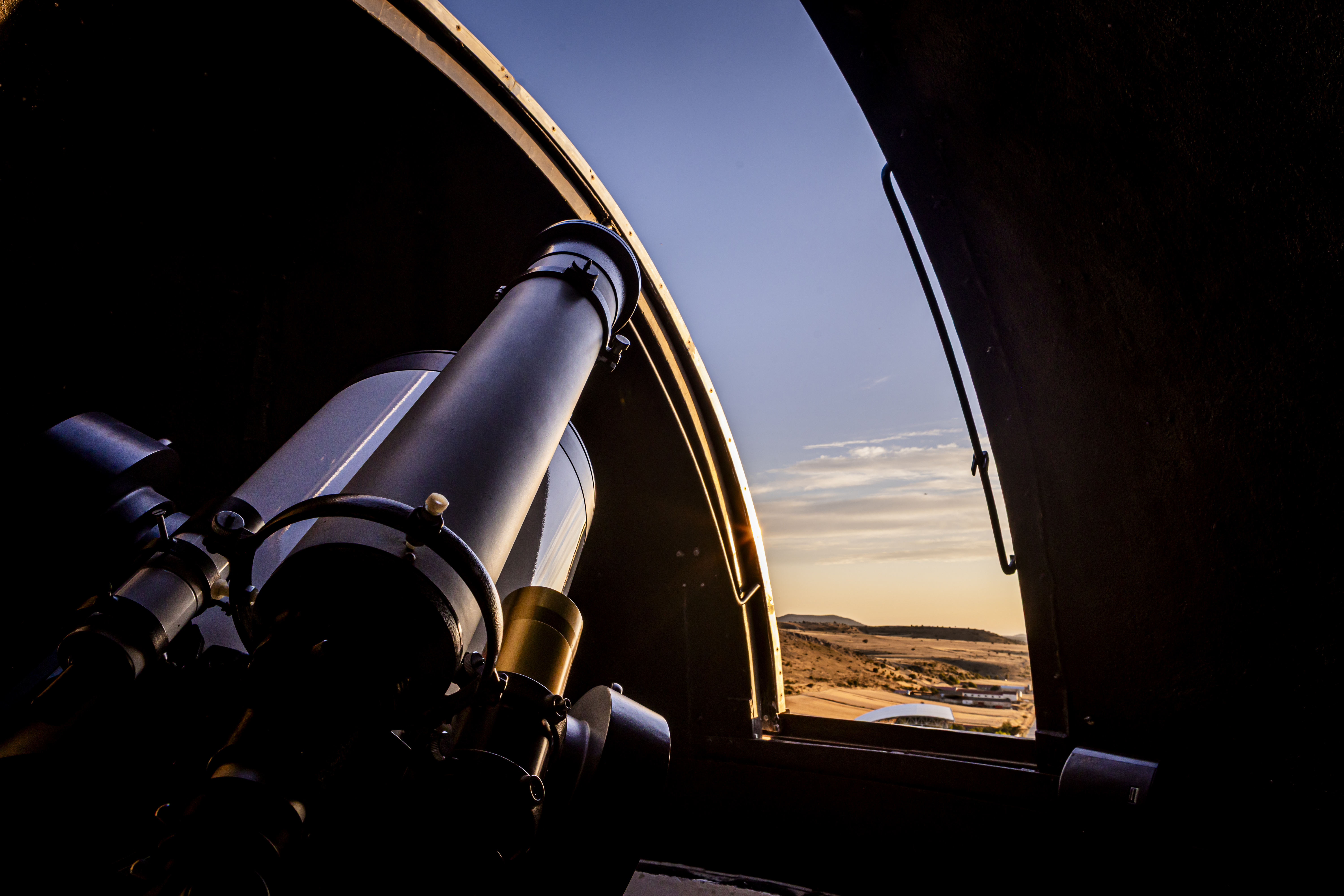 Cúpula Principal: Nuestra cúpula principal, de 5 metros de diámetro, alberga un telescopio Schmidt-Cassegrain de 40 cm de apertura (16 pulgadas) sobre una montura ecuatorial de horquilla. Esta potente tecnología nos permite observar con gran detalle los planetas del Sistema Solar, así como nebulosas, galaxias y cúmulos estelares lejanos.